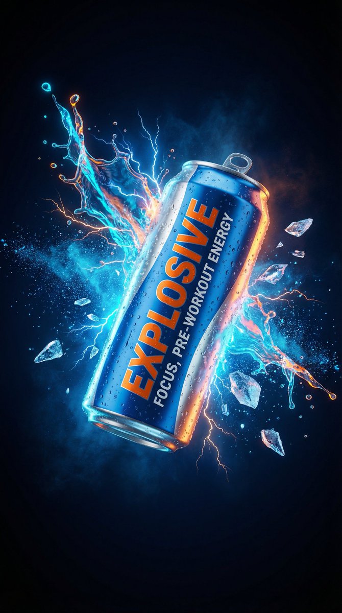電子商務主圖 - 能量飲料產品爆炸商業廣告提示範本