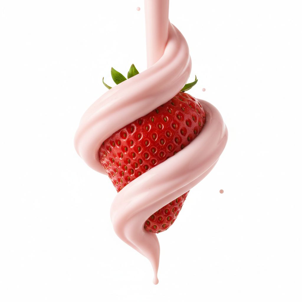 一張高速攝影棚照片,捕捉到一簇新鮮藍莓懸浮在半空中,被柔和的淺色藍莓優格輕輕包裹著,液體流動平滑而內斂,濺起的水花極少,質地濃稠滑順,優雅彎曲的優格流動環抱著藍莓,只有極少數的小水滴,流體動力學平靜,寫實的微距食物攝影,超逼真的質感,專業攝影棚燈光,柔和的漫射高光,純白色背景,獨立物體,乾淨的去背,無 CGI,無 3D 渲染,無插畫